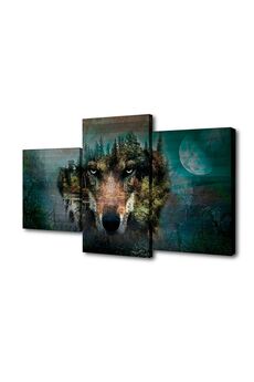 Яркая 3-модульная картина 50×80 см с изображением волка, быстрая установка, фотопечать на холсте, стильное решение для любого интерьера.