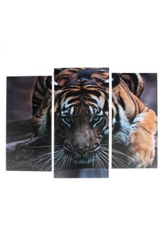 Яркая 3-модульная картина 60×80 см на холсте с изображением тигра, устойчива к выцветанию, легко монтируется, отлично подходит для любого интерьера.
