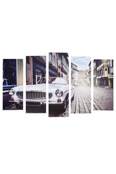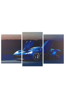 3-модульная картина 70×105 см с изображением синей машины—современное интерьерное решение, легко монтируется и устойчива к выгоранию.