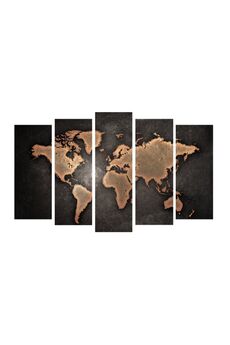 4-модульная карта мира 126×73 см на холсте — стильный декор для дома и офиса, стойкая печать и простая установка, визуально расширяет пространство.