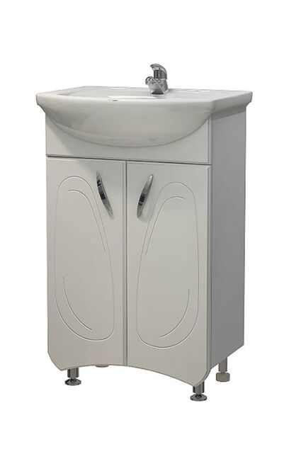Удобная тумба с керамическим умывальником, влагостойкий корпус, современный дизайн — оптимальный выбор для ванной комнаты.