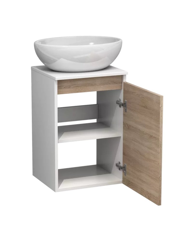 Современное решение для стильной и компактной ванной — подвесная тумба белого цвета с отделкой под "Дуб Бардолино" идеально впишется в любой интерьер и гарантирует практичное хранение необходимых принадлежностей.
