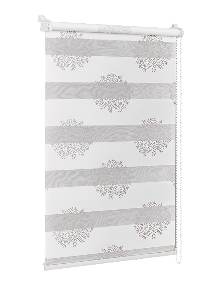 Стильное решение для регулировки освещения и создания приватности в помещении — рулонная штора с эффектом “день-ночь” с серебряным декором, идеально подходит для дома, офиса и коммерческих пространств. Изделие сочетает две чередующиеся полосы разных по густоте тканей, позволяя легко контролировать уровень света — от яркого дневного до полного затемнения.