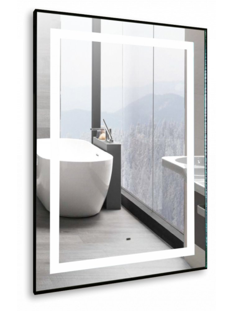 Зеркало 600×800 мм, металл. рамка, сенсорный выключатель, диммер, LED-подсветка — стильно, удобно, энергоэффективно для ванной и интерьера.