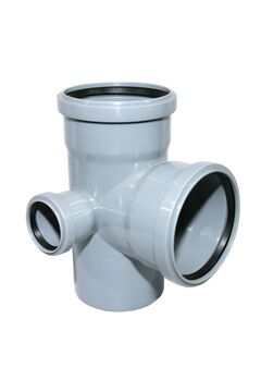 Крестовина канализационная 110/110/50 мм, угол 87°, полипропилен, стойкая к агрессивным средам, быстрый монтаж, высокая герметичность.