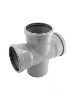 Канализационная крестовина 50/50 мм, угол 87°, для внутренней разводки, обеспечивает герметичность и стойкость к агрессивным средам.