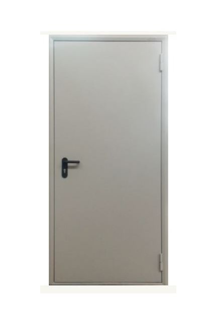1. Противостояние огню и дыму 60 минут EIS60; 2. Полотно дверное, торцевая/угловая коробка, 1,0/1,5 мм 3. Замок врезной противопожарный 4. Ручки черного цвета с огнестойким покрытием нажимного действия 5. Уплотнитель от холодного дыма 6. Термоактивный уплотнитель 7. Наполнение – огнестойкая минеральная плита Противопожарная дверь EI60, сталь, размер 980×2080 мм, до 60 мин. защиты, комплект фурнитуры, светло-серое покрытие, установка внутри и снаружи.