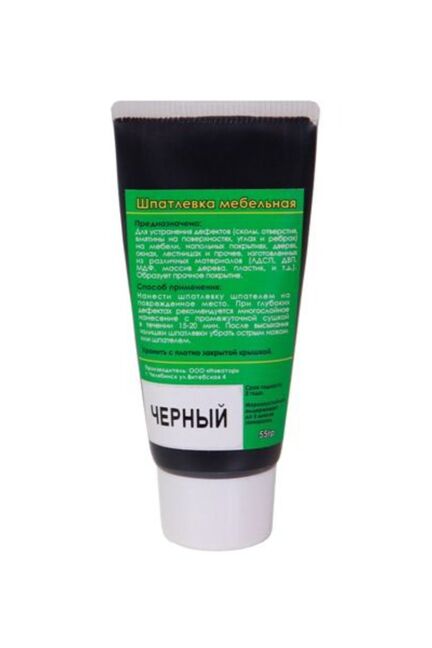 Для заполнения и выравнивания средних и больших сколов, отверстий, вмятин, в том числе восстановление углов и ребер, на различных поверхностях из ЛДСП, массива дерева, ламината, паркета (мебель, паркет, ламинат, двери, окна, лестницы). Образует прочное покрытие. Универсальная шпатлёвка чёрная 55 г для скрытия дефектов на мебели и дереве. Легко наносится, не трескается и быстро высыхает, подходит для ремонта и реставрации.