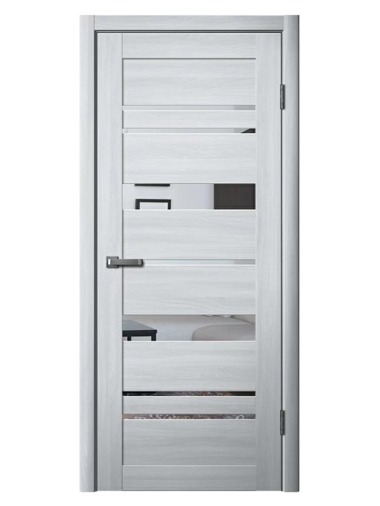 Элегантное дверное полотно с большим зеркалом и стильной отделкой под ясень пепельный — идеальный выбор для создания светлой, современной атмосферы в вашем доме или офисе. Полотно шириной 700 мм подходит для большинства стандартных проёмов и визуально расширяет пространство благодаря зеркальной поверхности, наполняя комнату светом.