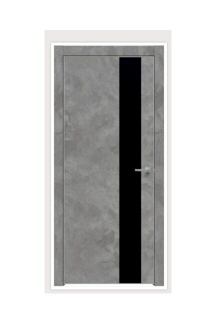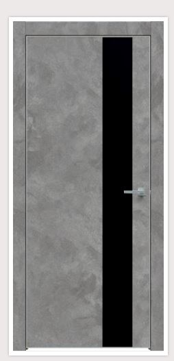 Фабрика дверей TRIADOORS (ФДТ) Дверное полотно 600×2000 мм, бетон темно-серый и черное стекло, прочное, стильное, подходит для современных интерьеров, влагостойкое.
