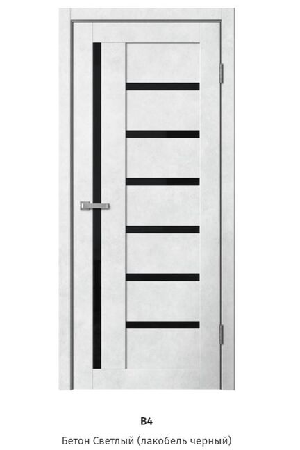 Дверное полотно В4 стекло черное бетон светлый 600мм