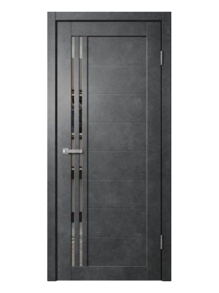 Создайте современный акцент в интерьере с элегантным дверным полотном c зеркалом и покрытием под темный бетон — отличный выбор для жилых и коммерческих помещений, где важны стиль, практичность и визуальное расширение пространства.