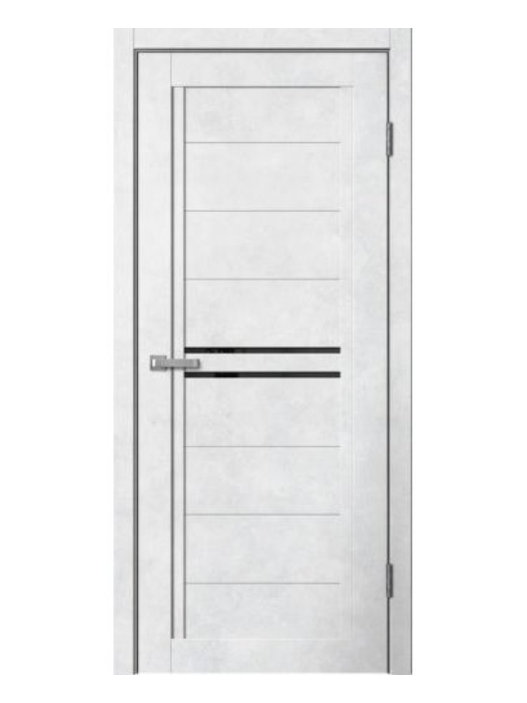 Стильное и современное дверное полотно с черным стеклом и отделкой под светлый бетон отлично впишется в интерьер квартиры, офиса или коммерческого помещения, подчеркнет современный дизайн пространства и обеспечит дополнительный свет за счет стеклянной вставки.