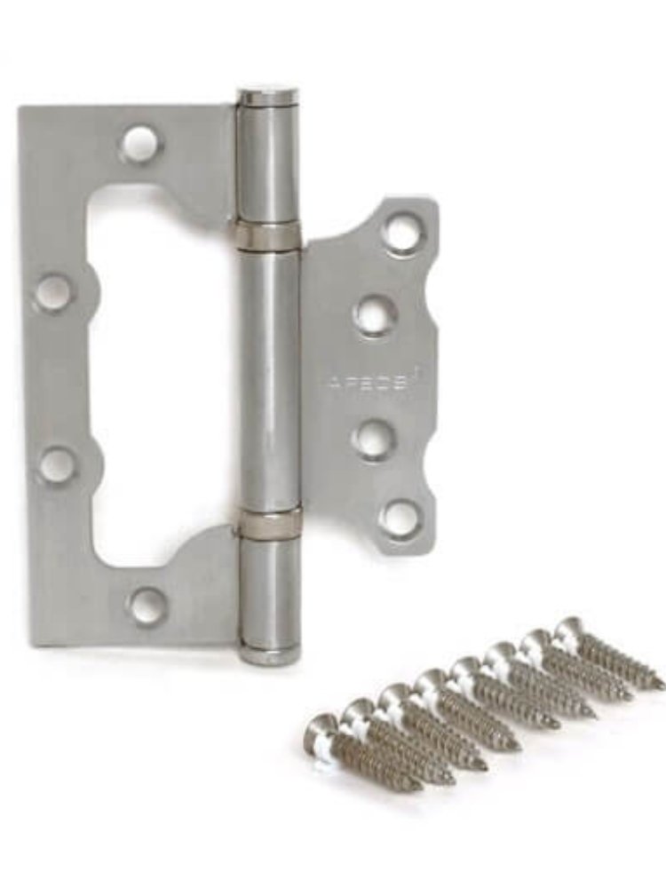 Идеальный выбор для надежной и быстрой установки дверей в жилых и коммерческих помещениях: петля из прочной стали с матовым никелевым покрытием не требует врезки, что упрощает монтаж и экономит время. Универсальна для межкомнатных и входных дверей.