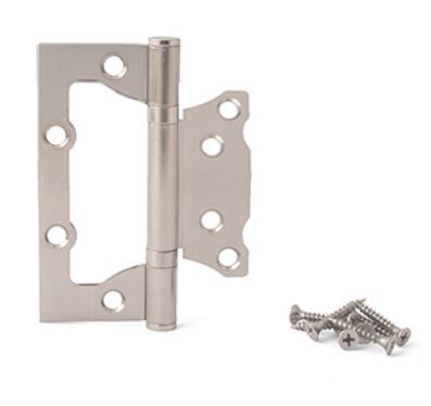 Стальная универсальная петля 100×75×2,3 мм с сатиновым покрытием, не требует врезки, долговечна и проста в установке, для всех видов дверей.