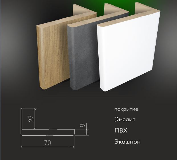 ПВХ телескопический наличник 70×2150 мм, "Ясень снежный", влагостойкий, легко монтируется, скрывает зазоры и неровности, долговечный.