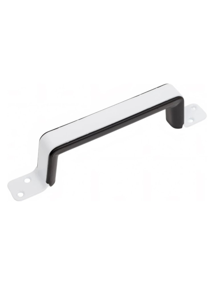 Металлическая ручка-скоба 100 мм, белое износостойкое покрытие, универсальный монтаж для мебели, дверей, хозяйственных помещений, устойчива к коррозии.
