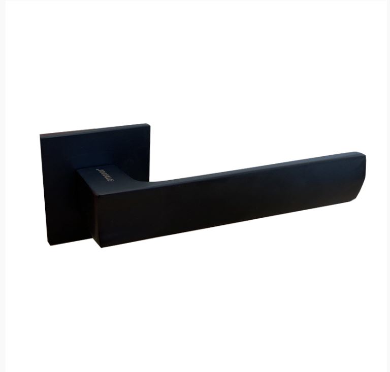 Дверная ручка из алюминия, черное матовое покрытие, устойчива к износу и царапинам, подходит для межкомнатных и входных дверей.