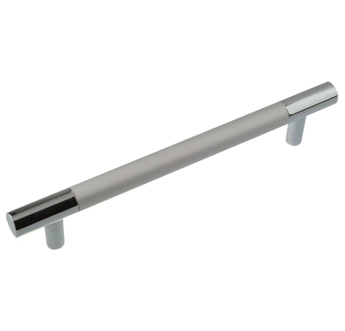 Эргономичная ручка-скоба 128 мм из цинкового сплава с хромовым покрытием устойчива к износу, стильна и подходит для большинства видов мебели.