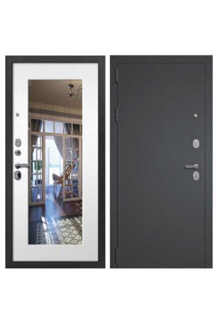 Дверь мет. 3К Модерн черный муар с блестками/ясень белый с зеркалом 860 L в Комсомольск-на-Амуре