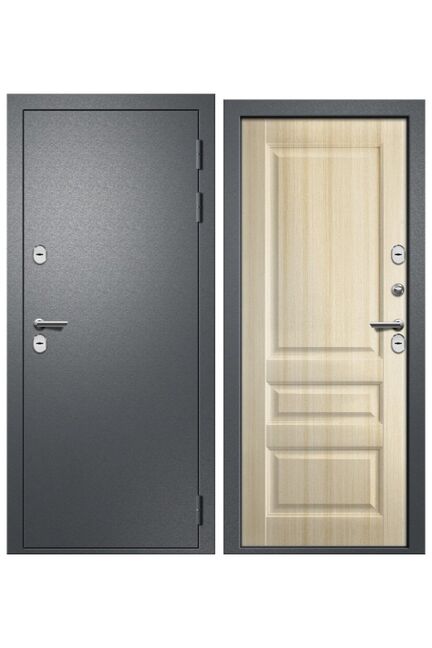 • Внешняя отделка: МДФ ламинированная панель «Дуб светлый», внутренняя — стальная панель с покрытием «букле» для устойчивости к механическим воздействиям