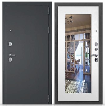Толщина полотна/глубина короба: 100/115 Внутренняя отделка: МДФ-панель 10 мм, зеркало Наполнение: Базальтовая плита Уплотнение: 3 контура Замок основной/дополнительный: Guardian цилиндровый (ключ-вертушка)/сувальдный (ключ-ключ) Стильная входная дверь 3К с зеркалом, усиленной защитой, шумо- и теплоизоляцией; идеальна для квартир и современных домов.