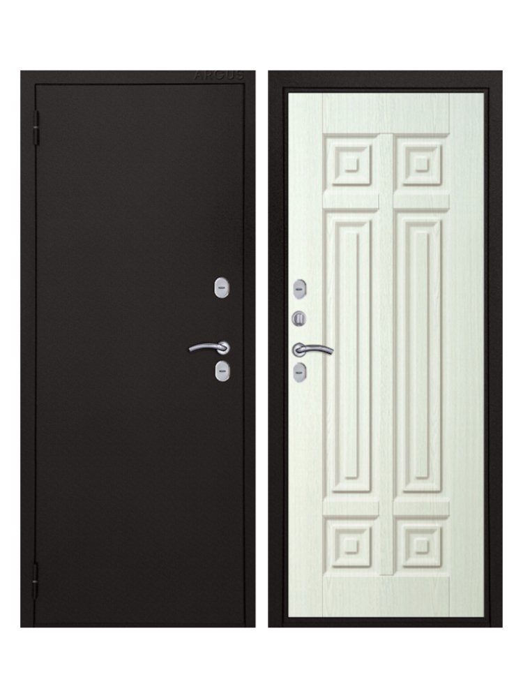 Петли - 2 шт., наружные, открывание 180°. Производитель Россия. Толщина полотна 100 мм. Глубина коробки 126 мм. Внешнее покрытие - Металл полимерно-порошковое покрытие "Букле чёрный". Внутреннее покрытие - МДФ панель 12 мм. "Белое дерево". Толщина металла 1,5 мм. Наполнение - Пенополистирол 84 мм. Уплотнитель 3 контура D-образный. Основной замок - Аргус сувальдный ключ/ключ. Дополнительный замок - Аргус сувальдный ключ/ключ. Броненакладка - есть. Ночная задвижка - независимая. Фурнитура - хром. Терморазрыв- на полотне и коробке. Терморазрыв по периметру, стойкий утеплитель, двойная отделка, высокий уровень безопасности — оптимальный выбор для частного дома.