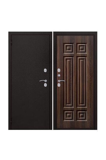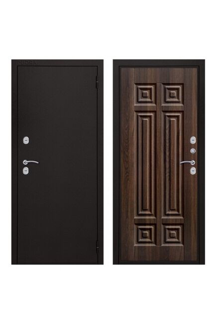 Петли - 2 шт., наружные, открывание 180°. Производитель - Россия. Толщина полотна - 100 мм. Глубина коробки - 126 мм. Внешнее покрытие - Металл полимерно-порошковое покрытие "Букле чёрный". Внутреннее покрытие - МДФ панель 12 мм. "Статус коньяк". Толщина металла - 1,5 мм. Наполнение - Пенополистирол 84 мм. Уплотнитель - 3 контура D-образный. Основной замок - Аргус сувальдный ключ/ключ. Дополнительный замок - Аргус сувальдный ключ/ключ. Броненакладка - есть. Ночная задвижка - независимая. Фурнитура - хром. Терморазрыв - на полотне и коробке.