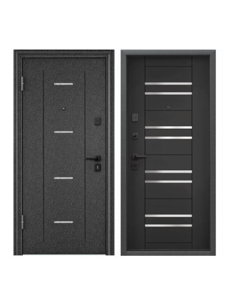 Идеальный выбор для надежной защиты и стильного оформления входа в дом или офис. Прочная стальная конструкция обеспечивает высокий уровень взломостойкости и долговечности, а современное покрытие черный шелк с текстурой шагрени придаёт элегантный внешний вид, устойчивый к царапинам и воздействию окружающей среды.