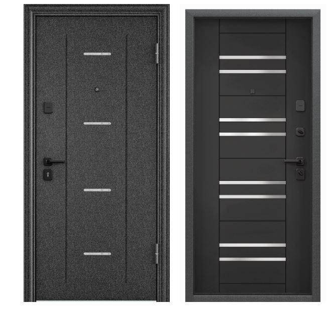 Дверь мет. Delta PRO ч. шелк, ч. шагрень D-DL1/ч. шагрень DPC-3W/НУ-1/ч. квадрат 860х2050 R