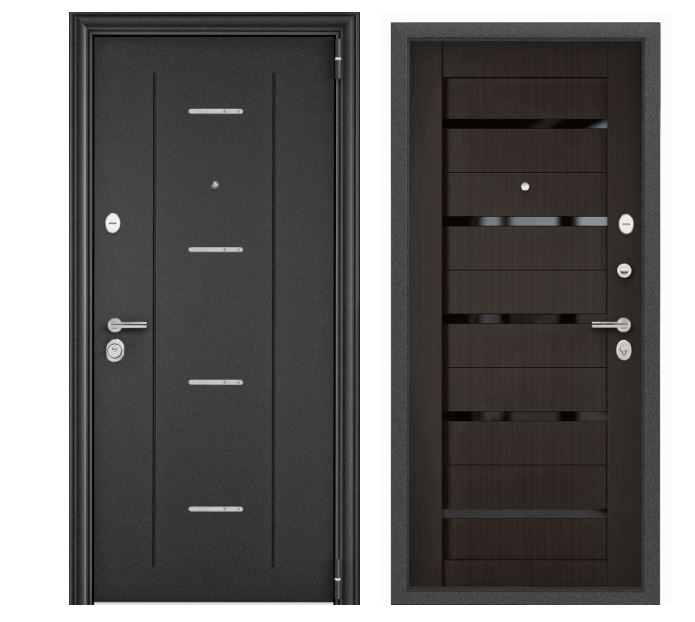 Дверь мет. Delta PRO т.-серый букле графит DL-1/лиственница темная DC-1B/хром 860х2050 R