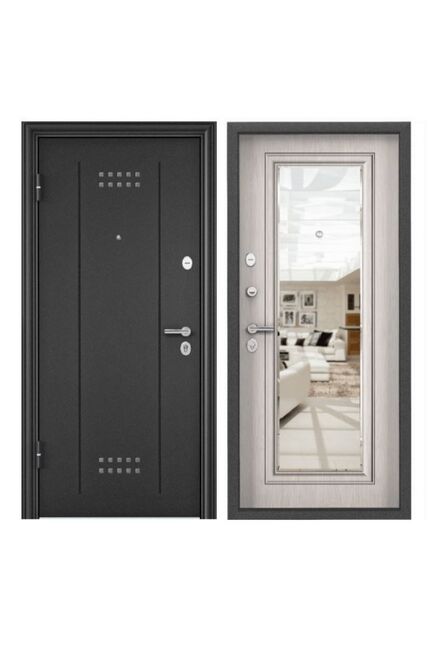 Дверь мет. Delta PRO т.-серый букле графит DL-2/лиственница белая CK6-CM/хром 860х2050 L в Комсомольск-на-Амуре