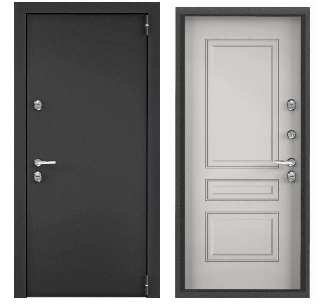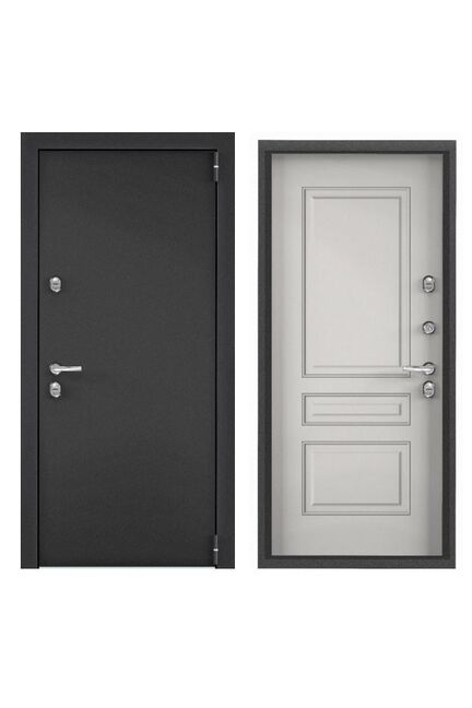 Тип внешней отделки: порошково-полимерное покрытие. Тип внутренней отделки: панель МДФ с ПВХ покрытием. Верхний замок: BORDER 3В 8-8Г/15, 4-го класса взломостойкости по ГОСТ 5089-2011. Нижний замок: Crit A30-4Л, 2-го класса вломостойкости по ГОСТ 5089-2011. Декоративные накладки на ключевину сувальдного замка с направляющими для ключа и подпружиненными шторками от продувания. Противосъемные ригели с петлевой стороны полотна 2 шт. Ночная задвижка. Надежная утепленная дверь 950x2050 мм с повышенной шумо- и теплоизоляцией, стильная двусторонняя отделка, подходит для квартир и домов.