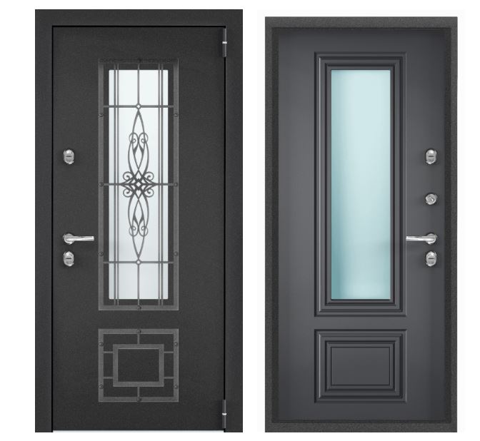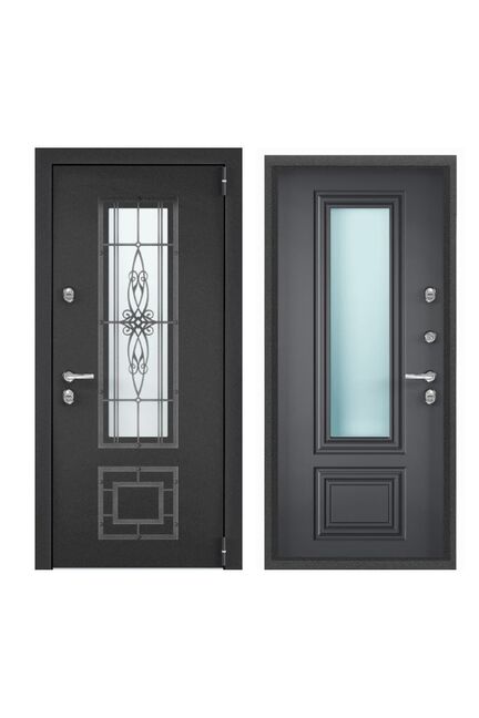 Тип внешней отделки: порошково-полимерное покрытие. Тип внутренней отделки: панель МДФ с ПВХ покрытием. Верхний замок: BORDER 3В 8-8Г/15, 4-го класса взломостойкости по ГОСТ 5089-2011. Нижний замок: Crit A30-4Л, 2-го класса вломостойкости по ГОСТ 5089-2011. Декоративные накладки на ключевину сувальдного замка с направляющими для ключа и подпружиненными шторками от продувания. Противосъемные ригели с петлевой стороны полотна 2 шт. Ночная задвижка.