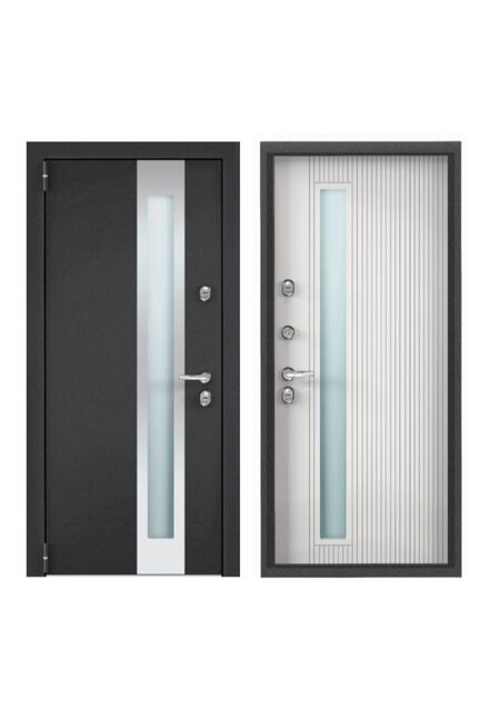 Дверь мет. Snegir PRO т.-сер.букле графит S60G-30/КТ белый S60G-03 880х2050 L