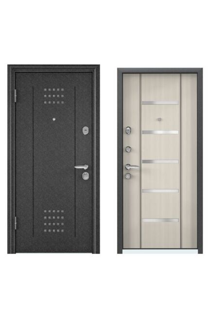 Толщина полотна 74 мм. Рама двери глуб. 120мм с гибами жесткости. Сувальдный замок 4(высшего) класса. Цилиндр.замок 4(высшего) класса. Ночная задвижка. Глазок широкого обзора. Утеплитель - пенополиуретан. Доп.изоляц.материал. Порог из нержавеющей стали