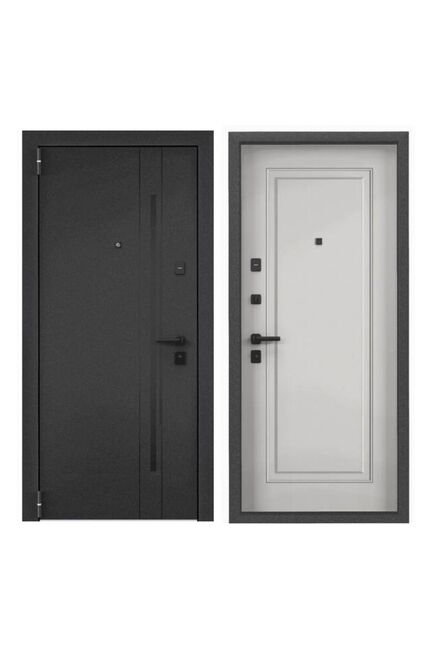 Дверь мет. TAU т.-серый букле графит SP-93B/бьянко T-C1/ч.квадрат 950х2050 L в Комсомольск-на-Амуре