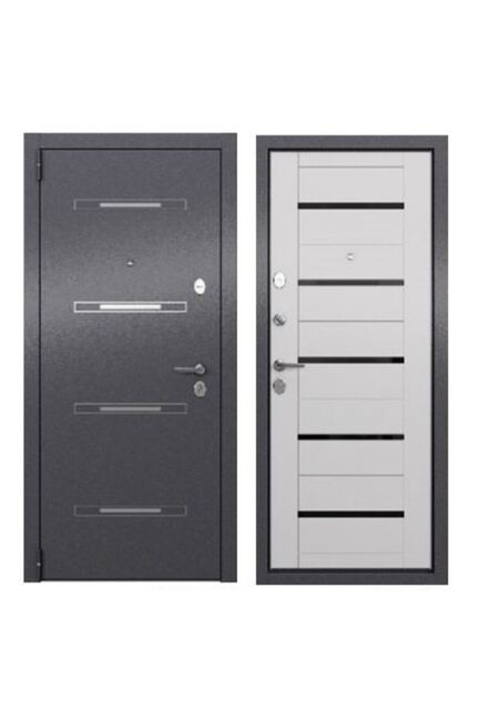 - Утеплитель: пенополистирол;- Петли разнесенные;- ТРОЙНОЙ контур резинового уплотнителя (2 на полотне и 1 на коробе);- Противосъемные ригели - 2 шт. с петлевой стороны;- Механизм регулировки притвора;- Глазок;- Ночная задвижка;- Ручка Стальная дверь с терморазрывом, двух замковой системой и утеплением — для квартир и домов,  защита, стильный дизайн и шумоизоляция.