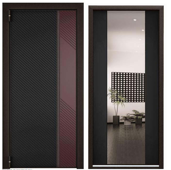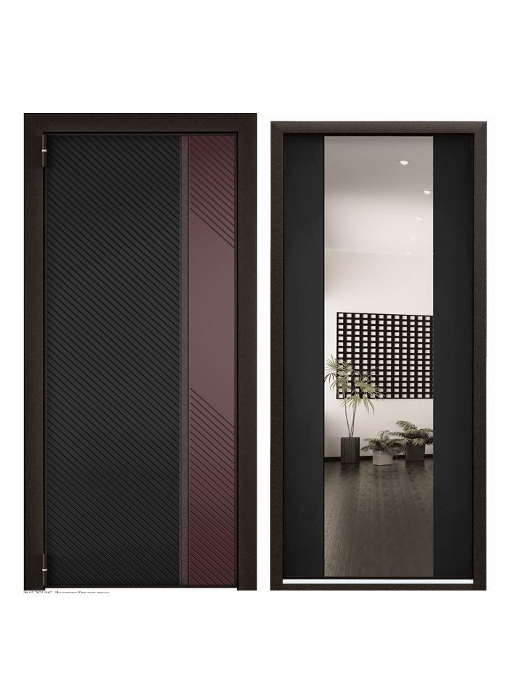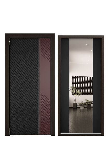 Дверь мет.ULTIMATUM M колоре неро,насыщ.черный Lines/кармин/Насыщ.черный ММ/хром 880*2050 R