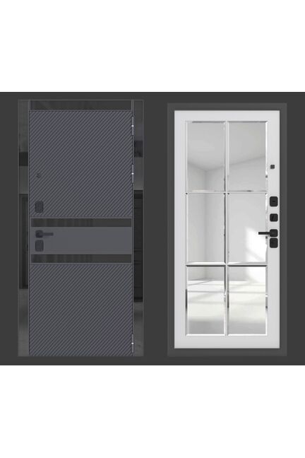 Наличник: МДФ 98 мм., вставки стекло чёрное.Петли: 3 шт., наружные, открывание 180°.Размеры: 960х2050, 860х2050.Ориентация: Правая и левая.Производитель: Россия.Толщина полотна: 90 мм.Глубина коробки: 115 мм.Внешнее покрытие: Порошково-полимерное покрытие Чёрный муар с блёстками. МДФ-панель 16 мм., вставки стекло чёрное с еврокромкой. Цвет: Софт чёрный.Внутреннее покрытие: МДФ-панель 12 мм., зеркало с фацетом. Цвет: Софт белый.Толщина металла: 1,2 мм.Наполнение: Базальтовая плита.Уплотнитель: 3 контура уплотнения.Основной замок: Guardian цилиндровый (ключ-вертушка).Дополнительный замок: Guardian цилиндровый (ключ-ключ).Броненакладка: Есть.Ночная задвижка: Есть.Фурнитура чёрная: Fuaro. Входная стальная дверь с утеплением и надёжными замками, для защиты и теплоизоляции дома или офиса. Надежность, прочность, современный дизайн.
