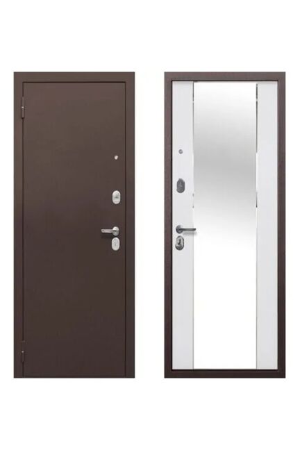 Конструкция: Цельногнутые полотно и короб. Толщина металла: 1,2 мм. Толщина полотна: 90 мм. Наполнение: минеральная плита. Внешнее покрытие: атмосферостойкое полимерное покрытие «Антик Серебро». Внутреннее покрытие: МДФ — панель 10 мм, цвет Эмалит белый, с зеркалом. Замки: цилиндровый/сувальдный Zirh Kilit. Ручка раздельная Хром, глазок, 3 петли, Независимая ночная задвижка. Толстая стальная дверь 9 см, с зеркалом, отличная шумо- и теплоизоляция, стиль и надежность для дома или квартиры, размер 2050×860 мм левый.