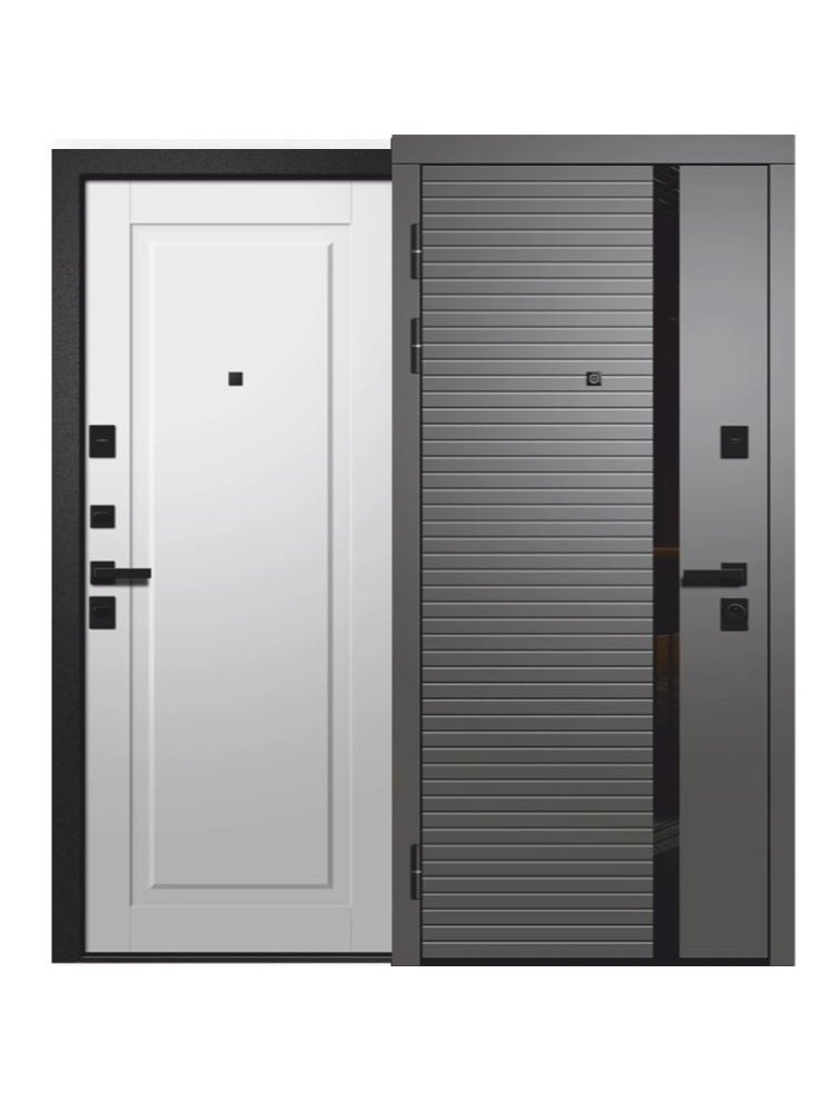 Покрытие: порошково-полимерное Цвет: Сатин чёрный. Внешняя отделка: МДФ-панель 10 мм, вставка стекло чёрное. Цвет: Софт графит. Толщина полотна/глубина короба: 115/145 мм. Толщина стали полотно/ короб: 1,4/1,4 мм. Внутренняя отделка: МДФ панель 10 мм. Цвет: Софт айс. Наполнение: минеральная плита. Уплотнение: 3 контура (1 магнитный). Основной замок: Border цилиндровый (ключ-вертушка). Дополнительный замок: Border сувальдный (ключ-ключ). Наличник: МДФ гладкий. Петли: 3 шт. Современная дверь с покрытием софт-графит, магнитным уплотнителем и декором Эрмитаж-7 сатин — для стильного и уютного интерьера.