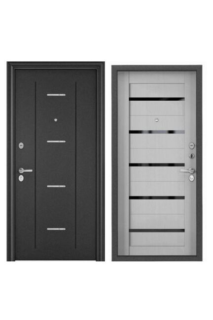 Дверь мет. Delta PRO темно-серый букле графит DL-1/дуб белый матовый DC-1B/хром 860х2050 R в Комсомольск-на-Амуре