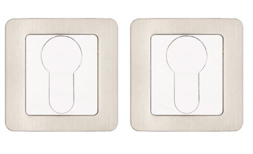 Накладки под евроцилиндр. Фиксаторы для защелок. Стильная накладка матовый никель, устойчива к царапинам, защищает замок, подходит для межкомнатных и входных дверей.