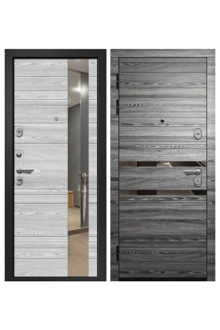 Внешняя отделка: Трехслойное полимерное покрытие + МДФ 10 мм(декор) Цвет: Вяз каньон вековой графит+молдинг (RAL7039) Внутренняя отделка: МДФ 10 мм с фрезерованным рисунком Цвет панели: Вяз каньон вековой айс и вставка «зеркало» Толщина стали:1,4 мм. Толщина полотна: 115 мм Толщина короба: 145 мм Наполнение: минеральна плита Уплотнение: тройной уплотнитель Размеры: 860*2050, 960*2050 Основной замок: BORDER 3B4-3/85Г (цилиндровый) Дополнительный замок: BORDER ЗВ 8-6/Б5Т (сувальдный) Ночная задвижка: есть Ручка раздельная, ключ вертушка, броненакладка, глазок, эксцентрик Надежная дверь с долговечной отделкой, отличной шумо- и теплоизоляцией, современным дизайном и максимальной защитой вашего дома.