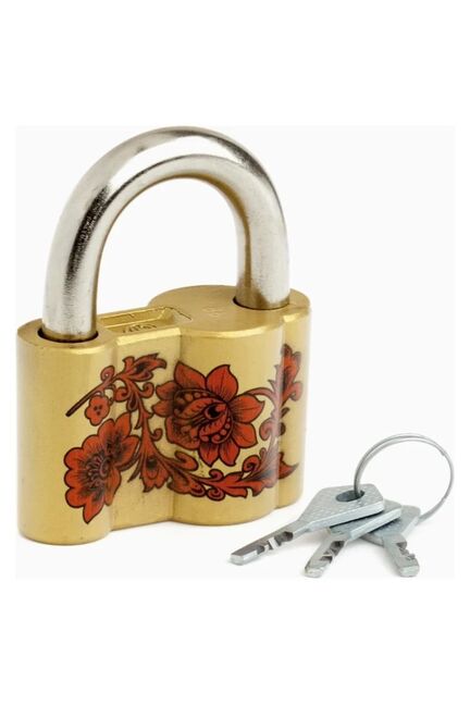 Прочный навесной замок с росписью Хохлома, стойкий к взлому и коррозии, подходит для гаражей, ворот и складов. В комплекте 3 ключа.
