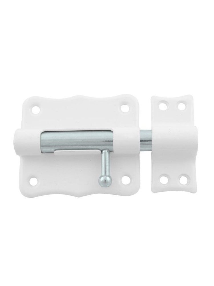 Прочная накладная задвижка 70 мм в белом цвете для запирания дверей, устойчива к коррозии, легко устанавливается, надёжно защищает помещение.
