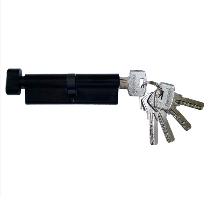 Цилиндр Trodos для межкомнатных и входных дверей.Материал корпуса: сплав ЦАМ.Материал ключа: сталь.Надежное и прочное решения для ваших замков.В комплекте 5 стальных ключей перфорированного типа.Крепеж в комплекте.Длину цилиндра подбирайте исходя из толщины двери, с небольшим запасом под накладку. Надежный цилиндровый механизм, 5 ключей, черный матовый, длина 100 мм (50/50), подходит для деревянных и металлических дверей.