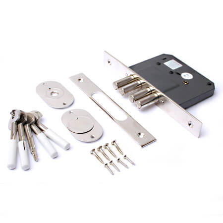 Надежный врезной замок, стальной корпус, хром, для дверей 35–45 мм, универсальный механизм, 3 ключа, высокая взломостойкость и долговечность.