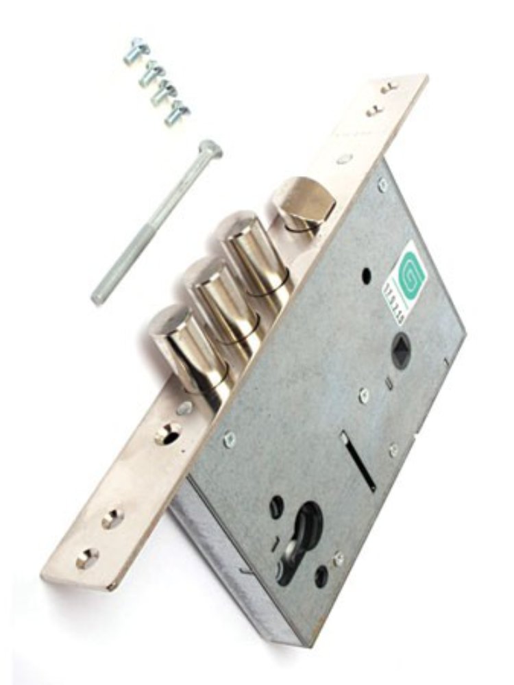 Рекомендован для установки в входные двери Да Рекомендован для установки в межкомнатные двери Нет Тип крепления Лицевая планка Тип ригелей Цилиндрические Количество ригелей 3 Вылет ригелей 26 мм Диаметр ригеля 15.8 мм Удаление ключевого отверстия (Backset) 65 мм Тип механизма секретности Цилиндровый Тип цилиндрового механизма Евроцилиндр Комплектация цилиндром Не комплектуется Дополнительный механизм секретности Нет Защелка Классическая Тип защелки Универсальная Межосевое расстояние 85 мм Комплектация ручками Не комплектуется Автоматическое запирание Не автоматическое Количество точек запирания 1 Дополнительное запирание изнутри Нет Покрытие лицевой планки Гальваника Цвет лицевой планки Хром Три стальных ригеля, врезная установка, высокая взломостойкость, совместим с цилиндрами — надёжная защита для металлических и деревянных дверей.
